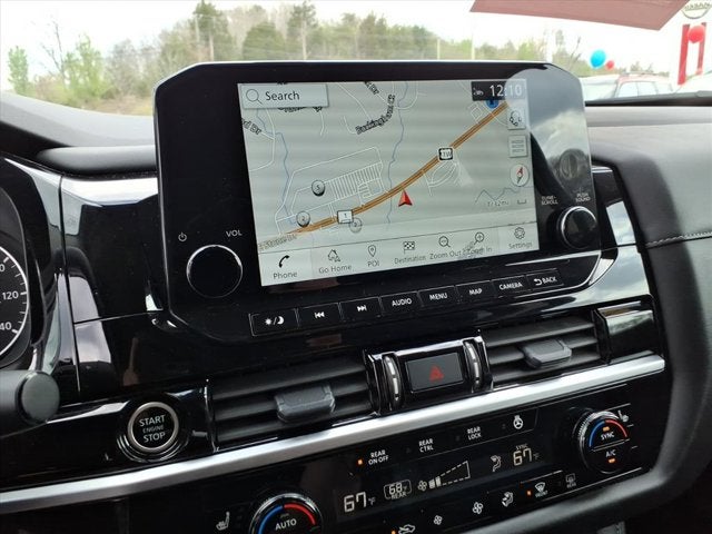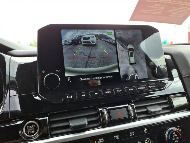 Nissan Certified Certified, 4WD, 3rd row seats: bench, 4-Wheel Disc Brakes, 6 Speakers, ABS brakes, Air Conditioning, Alloy wheels, AM/FM radio: SiriusXM, Auto High-beam Headlights, Auto-dimming Rear-View mirror, Automatic temperature control, Axle Ratio: 4.334, Bench Seat Carpeted Floor Mats (Set of 4), Black Splash Guards (Set of 4), Brake assist, Bumpers: body-color, Cross Bars, Delay-off headlights, Driver door bin, Driver vanity mirror, Dual front impact airbags, Dual front side impact airbags, Electronic Stability Control, Emergency communication system, Exterior Parking Camera Rear, Four wheel independent suspension, Front anti-roll bar, Front Bucket Seats, Front Center Armrest, Front dual zone A/C, Front reading lights, Fully automatic headlights, Garage door transmitter: HomeLink, Heated door mirrors, Heated Front Bucket Seats, Heated front seats, Heated steering wheel, Illuminated entry, Knee airbag, Leather steering wheel, Leather-Appointed Seating Surfaces, Low tire pressure warning, Navigation system: NissanConnect with Navigation and Services, Nissan USB Charging Cable Set, NissanConnect featuring Apple CarPlay and Android Auto, NissanConnect w/Navigation & Services, Occupant sensing airbag, Outside temperature display, Overhead airbag, Overhead console, Panic alarm, Passenger door bin, Passenger vanity mirror, Power door mirrors, Power driver seat, Power Liftgate, Power passenger seat, Power steering, Power windows, Radio data system, Radio: AM/FM Audio System, Rear air conditioning, Rear anti-roll bar, Rear reading lights, Rear seat center armrest, Rear side impact airbag, Rear window defroster, Rear window wiper, Reclining 3rd row seat, Remote keyless entry, Security system, Speed control, Speed-sensing steering, Split folding rear seat, Spoiler, Steering wheel mounted audio controls, Tachometer, Telescoping steering wheel, Tilt steering wheel, Traction control, Trip computer, Turn signal indicator mirrors, Variably intermittent wipers, and Wheels: 18 x 8J Machined Alloy.
