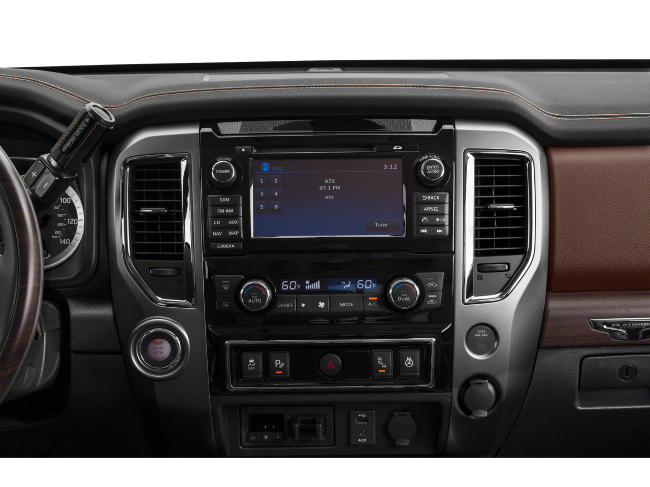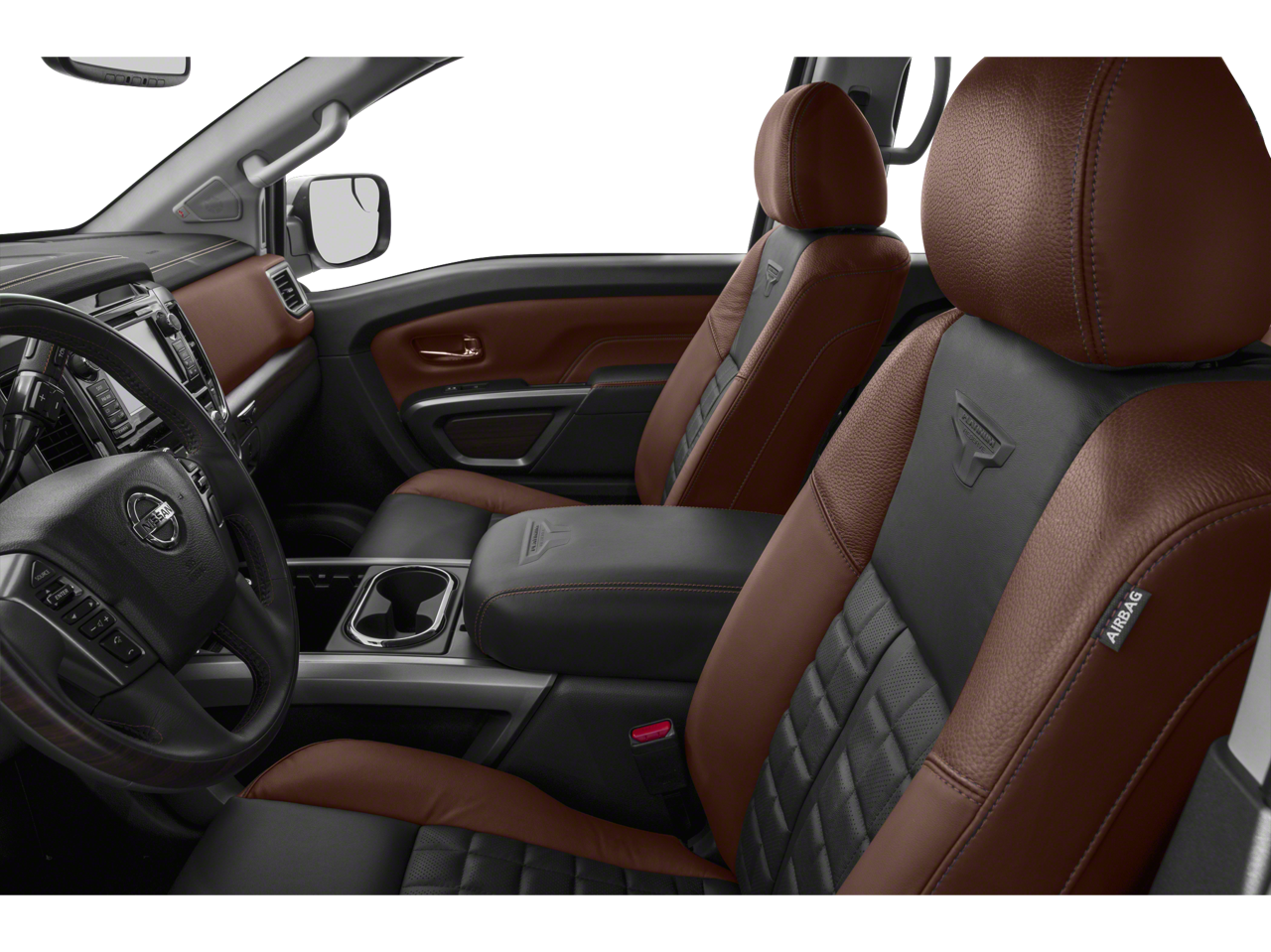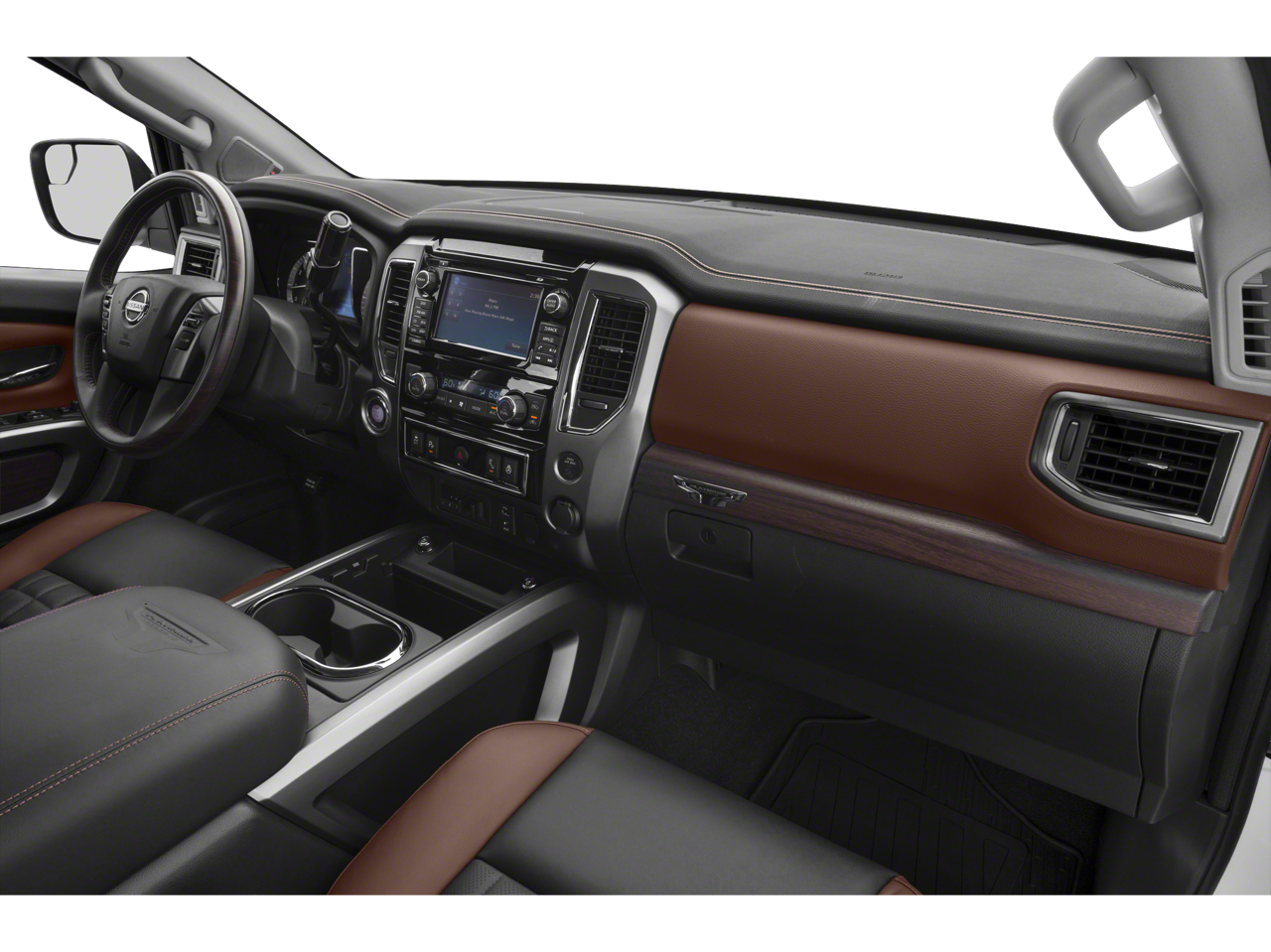Platinum Reserve Utility Bed Package (5.5' TITAN Box and Rear Bumper Step (B13)), Platinum Utility Package (TITAN Box), 4WD, 12 Speakers, 2.937 Axle Ratio, 4-Wheel Disc Brakes, ABS brakes, Activation Disclaimer, Air Conditioning, Alloy wheels, AM/FM radio: SiriusXM, Auto tilt-away steering wheel, Auto-dimming door mirrors, Auto-dimming Rear-View mirror, Automatic temperature control, Blind Spot Warning, Brake assist, CD player, Chrome wheels, Compass, Delay-off headlights, Door Sill Kick Plates, Driver door bin, Driver vanity mirror, Dual front impact airbags, Dual front side impact airbags, Electronic Stability Control, Emergency communication system: NissanConnect Services, Floor Mats, Front anti-roll bar, Front Bucket Seats, Front Center Armrest, Front dual zone A/C, Front fog lights, Front reading lights, Front wheel independent suspension, Garage door transmitter: HomeLink, Heated & Cooled Front Captain's Chairs, Heated door mirrors, Heated front seats, Heated rear seats, Heated steering wheel, Illuminated entry, Illuminated running boards, Leather Shift Knob, Leather steering wheel, LED Fog Lights w/Dark Chrome Bezel, Low tire pressure warning, Memory seat, Navigation System, NissanConnect Services Powered By SiriusXM, Occupant sensing airbag, Outside temperature display, Overhead airbag, Overhead console, Panic alarm, Passenger door bin, Passenger vanity mirror, Power door mirrors, Power driver seat, Power passenger seat, Power steering, Power windows, Premium Leather Seat Trim, Radio data system, Radio: NissanConnect w/SiriusXM/Navi & Mobile Apps, Rain sensing wipers, Rear anti-roll bar, Rear seat center armrest, Rear step bumper, Rear window defroster, Remote keyless entry, Running Boards w/Dark Chrome, Security system, Speed control, Speed-sensing steering, Speed-Sensitive Wipers, Split folding rear seat, Steering wheel memory, Steering wheel mounted audio controls, Tachometer, Telescoping steering wheel, Tilt steering wheel, Traction control, Trip computer, Turn signal indicator mirrors, Variably intermittent wipers, Ventilated front seats, Voltmeter, and Wheels: 20 x 8 Dark Chrome Clad.