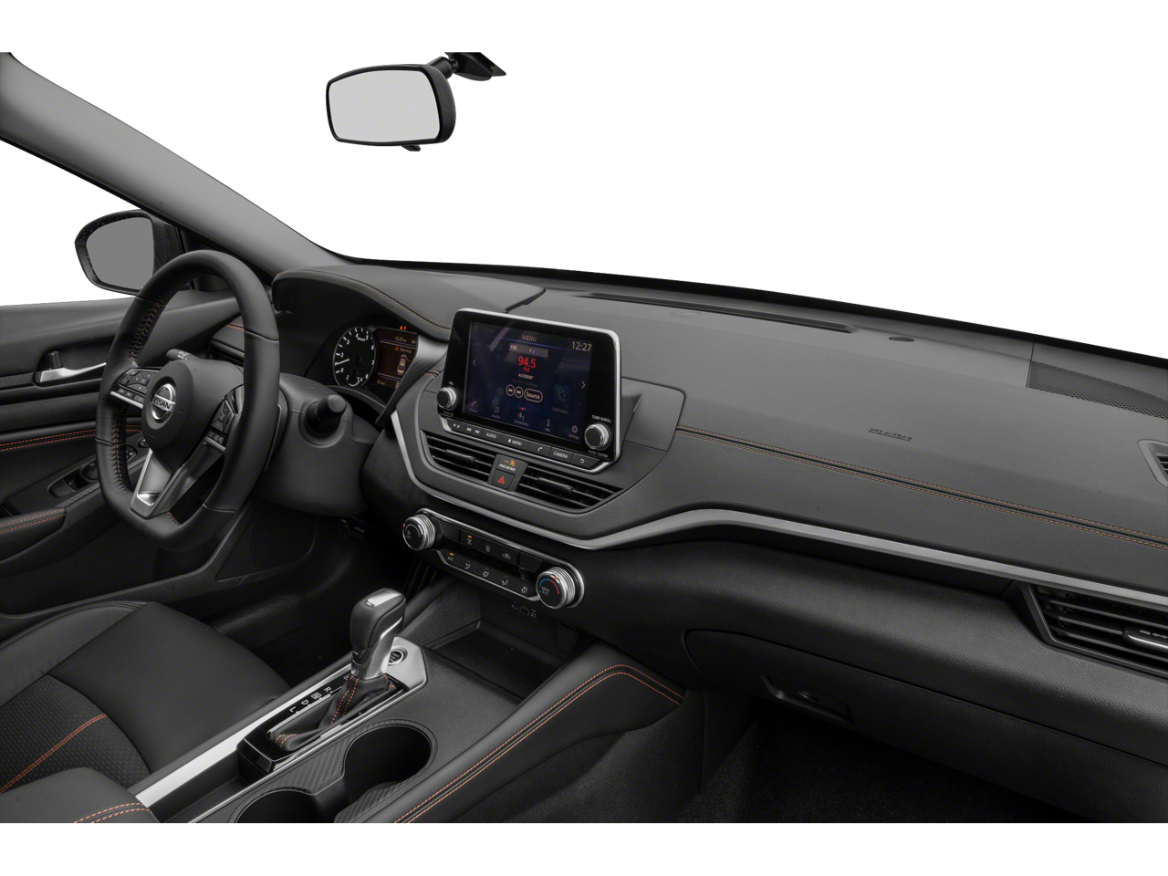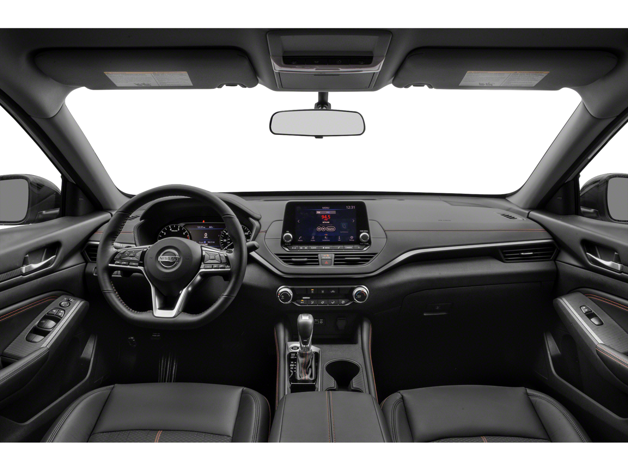 CVT with Xtronic, 19 Alloy Wheels, 4-Wheel Disc Brakes, 6 Speakers, ABS brakes, Air Conditioning, Alloy wheels, AM/FM radio: SiriusXM, Auto High-beam Headlights, Blind Spot Warning, Brake assist, Bumpers: body-color, Delay-off headlights, Driver door bin, Driver vanity mirror, Dual front impact airbags, Dual front side impact airbags, Electronic Stability Control, Four wheel independent suspension, Front anti-roll bar, Front Bucket Seats, Front Center Armrest, Front reading lights, Front Sport Bucket Seats, Fully automatic headlights, Illuminated entry, Knee airbag, Leather Shift Knob, Low tire pressure warning, NissanConnect featuring Apple CarPlay and Android Auto, Occupant sensing airbag, Outside temperature display, Overhead airbag, Overhead console, Panic alarm, Passenger door bin, Passenger vanity mirror, Power door mirrors, Power driver seat, Power steering, Power windows, Radio data system, Radio: AM/FM Audio System, Rear anti-roll bar, Rear Parking Sensors, Rear reading lights, Rear seat center armrest, Rear side impact airbag, Rear window defroster, Remote keyless entry, Security system, Speed control, Speed-sensing steering, Speed-Sensitive Wipers, Split folding rear seat, Sport Seat Trim, Sport steering wheel, SR Floor Mats/Trunk Mat/Hideaway Nets, Steering wheel mounted audio controls, Tachometer, Telescoping steering wheel, Tilt steering wheel, Traction control, Trip computer, and Variably intermittent wipers.