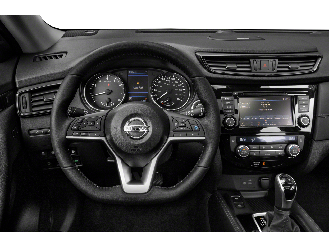 1-Piece Carpeted Cargo Area Protector & Floor Mats, 17 Aluminum Wheels, 4 Speakers, 4-Wheel Disc Brakes, 6.386 Axle Ratio, ABS brakes, Air Conditioning, Alloy wheels, AM/FM Radio, AM/FM radio: SiriusXM, Auto High-beam Headlights, Blind Spot Warning, Brake assist, Bumpers: body-color, CD player, Cloth Seat Trim, Delay-off headlights, Driver door bin, Driver vanity mirror, Dual front impact airbags, Dual front side impact airbags, Electronic Stability Control, First Aid Kit, Four wheel independent suspension, Front anti-roll bar, Front Bucket Seats, Front Center Armrest, Front reading lights, Fully automatic headlights, Illuminated entry, Knee airbag, Low tire pressure warning, NissanConnect featuring Apple CarPlay and Android Auto, Occupant sensing airbag, Outside temperature display, Overhead airbag, Overhead console, Panic alarm, Passenger door bin, Passenger vanity mirror, Power door mirrors, Power steering, Power windows, Radio data system, Rear anti-roll bar, Rear Parking Sensors, Rear seat center armrest, Rear side impact airbag, Rear window defroster, Rear window wiper, Remote keyless entry, Security system, Speed control, Speed-sensing steering, Speed-Sensitive Wipers, Split folding rear seat, Spoiler, Steering wheel mounted audio controls, Tachometer, Telescoping steering wheel, Tilt steering wheel, Traction control, Trip computer, and Variably intermittent wipers.