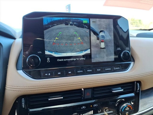 AWD, 10 Speakers, 19 Aluminum Alloy Wheels, 4-Wheel Disc Brakes, 5.604 Axle Ratio, ABS brakes, Air Conditioning, Alloy wheels, AM/FM radio, Auto High-beam Headlights, Auto-dimming Rear-View mirror, Automatic temperature control, Black Splash Guards (Set of 4), Bose Premium Audio System, Brake assist, Bumpers: body-color, Chrome Rear Bumper Protector, Delay-off headlights, Driver door bin, Driver vanity mirror, Dual front impact airbags, Dual front side impact airbags, Electronic Stability Control, Emergency communication system: NissanConnect Services, Exterior Parking Camera Rear, First Aid Kit, Floor Mats w/2-Piece Cargo Area Protector, Four wheel independent suspension, Front anti-roll bar, Front Bucket Seats, Front Center Armrest, Front dual zone A/C, Front fog lights, Front reading lights, Fully automatic headlights, Heads-Up Display, Heated door mirrors, Heated Front Bucket Seats, Heated front seats, Heated rear seats, Heated steering wheel, Illuminated entry, Illuminated Kick Plates, Knee airbag, Leather steering wheel, Low tire pressure warning, Memory seat, Navigation system: NissanConnect Navigation, NissanConnect featuring Apple CarPlay and Android Auto, Occupant sensing airbag, Outside temperature display, Overhead airbag, Overhead console, Panic alarm, Passenger door bin, Passenger vanity mirror, Power door mirrors, Power driver seat, Power Liftgate, Power moonroof, Power passenger seat, Power steering, Power windows, Quilted Semi-Aniline Leather Seat Trim, Radio data system, Radio: AM/FM NissanConnect w/Navigation, Rear air conditioning, Rear anti-roll bar, Rear seat center armrest, Rear side impact airbag, Rear window defroster, Rear window wiper, Remote keyless entry, Roof rack: rails only, Security system, Speed control, Speed-Sensitive Wipers, Split folding rear seat, Spoiler, Steering wheel mounted audio controls, Tachometer, Telescoping steering wheel, Tilt steering wheel, Traction control, Trip computer, Turn signal indicator mirrors, and Variably intermittent wipers.