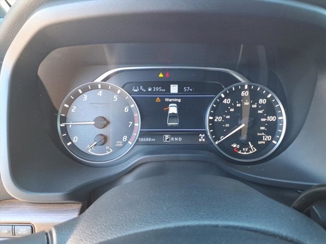 Moonroof Package, Off Road Protection Package (All Season Floor Mats), Platinum Reserve Utility Package, Platinum Utility Package (TITAN Box), Nissan Certified Certified, 4WD, 12 Speakers, 3.692 Axle Ratio, 4-Wheel Disc Brakes, ABS brakes, Air Conditioning, Alloy wheels, AM/FM radio: SiriusXM, Auto High-beam Headlights, Auto tilt-away steering wheel, Auto-dimming door mirrors, Auto-dimming Rear-View mirror, Automatic temperature control, Bed Assist Grip, Blind Spot Warning, Brake assist, Compass, Delay-off headlights, Driver door bin, Driver vanity mirror, Dual front impact airbags, Dual front side impact airbags, Electronic Stability Control, Emergency communication system: NissanConnect Services, Exterior Parking Camera Rear, Front anti-roll bar, Front Bucket Seats, Front Center Armrest, Front dual zone A/C, Front fog lights, Front reading lights, Front wheel independent suspension, Fully automatic headlights, Garage door transmitter: HomeLink, Genuine wood dashboard insert, Genuine wood door panel insert, Heated & Cooled Front Captain's Seats, Heated door mirrors, Heated front seats, Heated rear seats, Heated steering wheel, Illuminated entry, Knee airbag, Leather Shift Knob, Leather steering wheel, Lighted Running Boards, Logo Light & Radiant Grille Emblem, Low tire pressure warning, Memory seat, Navigation system: NissanConnect Navigation, NissanConnect featuring Apple CarPlay and Android Auto, NissanConnect Services Powered By SiriusXM, Occupant sensing airbag, Outside temperature display, Overhead airbag, Overhead console, Panic alarm, Passenger door bin, Passenger vanity mirror, Platinum Illuminated Kick Plate, Platinum Reserve Mud Flaps, Power door mirrors, Power driver seat, Power passenger seat, Power steering, Power windows, P