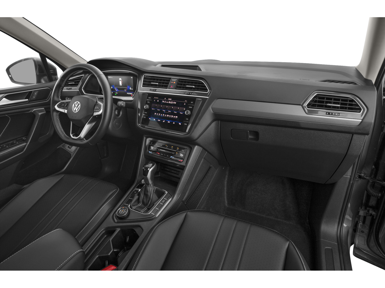 Clean CARFAX. Black 2022 Volkswagen Tiguan 2.0T SE FWD 8-Speed Automatic with Tiptronic 2.0L TSI DOHC Recent Arrival! 23/30 City/Highway MPG Please contact our internet department with any questions @ (888)703-9742 3.33 Axle Ratio, 3rd row seats: bench, 4-Wheel Disc Brakes, 4-Wheel Independent Suspension, 6 Speakers, ABS brakes, Air Conditioning, Alloy wheels, AM/FM radio: SiriusXM with 360L, Auto-dimming Rear-View mirror, Automatic temperature control, Brake assist, Bumpers: body-color, Compass, Delay-off headlights, Driver door bin, Driver vanity mirror, Dual front impact airbags, Dual front side impact airbags, Electronic Stability Control, Emergency communication system: Car-Net, Exterior Parking Camera Rear, Four wheel independent suspension, Front anti-roll bar, Front Bucket Seats, Front Center Armrest, Front dual zone A/C, Front reading lights, Fully automatic headlights, Heated door mirrors, Heated Front Comfort Seats, Heated front seats, Illuminated entry, Leather Shift Knob, Low tire pressure warning, Occupant sensing airbag, Outside temperature display, Overhead airbag, Overhead console, Panic alarm, Passenger door bin, Passenger vanity mirror, Perforated V-Tex Leatherette Seating Surfaces, Power door mirrors, Power driver seat, Power Liftgate, Power steering, Power windows, Radio data system, Radio: MIB3 Composition Media AM/FM/HD, Rain sensing wipers, Rear anti-roll bar, Rear reading lights, Rear seat center armrest, Rear window defroster, Rear window wiper, Remote keyless entry, Roof rack: rails only, Security system, Speed control, Speed-sensing steering, Split folding rear seat, Spoiler, Steering wheel mounted audio controls, Tachometer, Telescoping steering wheel, Tilt steering wheel, Traction control, Trip computer, Turn signal indicator mirrors, Variably intermittent wipers, and Wheels: 18Dark Graphite 10-Spoke Alloy.