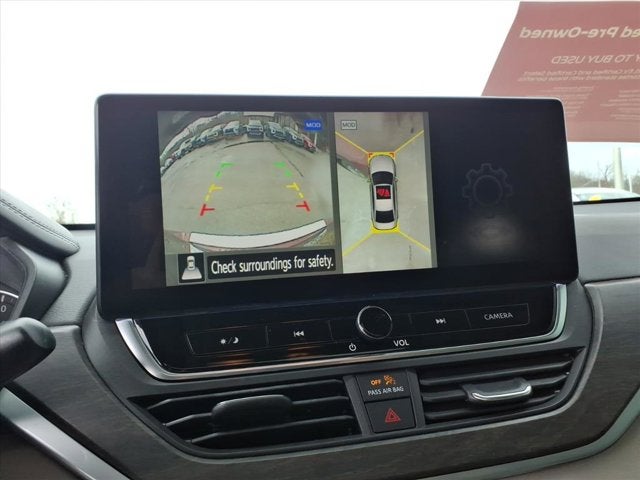Nissan Certified Certified, CVT with Xtronic, 19 Unique Alloy Wheels, 4-Wheel Disc Brakes, 9 Speakers, ABS brakes, Air Conditioning, Alloy wheels, AM/FM radio: SiriusXM, Auto High-beam Headlights, Automatic temperature control, Blind Spot Warning, Body-Colored Splash Guards, Brake assist, Bumpers: body-color, Chrome Bumper Protector, Compass, Delay-off headlights, Driver door bin, Driver vanity mirror, Dual front impact airbags, Dual front side impact airbags, Electronic Stability Control, Emergency communication system: NissanConnect Services, Floor Mats/Trunk Mat/Hideaway Net, Four wheel independent suspension, Front anti-roll bar, Front Bucket Seats, Front Center Armrest, Front dual zone A/C, Front reading lights, Fully automatic headlights, Heated door mirrors, Heated Front Bucket Seats, Heated front seats, Heated steering wheel, Illuminated entry, Illuminated Kick Plates, Knee airbag, Leather Shift Knob, Leather-Appointed Seat Trim, Low tire pressure warning, Navigation System, Occupant sensing airbag, Outside temperature display, Overhead airbag, Overhead console, Panic alarm, Passenger door bin, Passenger vanity mirror, Power door mirrors, Power driver seat, Power moonroof, Power passenger seat, Power steering, Power windows, Radio data system, Radio: AM/FM w/Bose Premium Sound System, Rear anti-roll bar, Rear Parking Sensors, Rear reading lights, Rear seat center armrest, Rear side impact airbag, Rear window defroster, Remote keyless entry, Security system, Speed control, Speed-sensing steering, Speed-Sensitive Wipers, Split folding rear seat, Steering wheel mounted audio controls, Tachometer, Telescoping steering wheel, Tilt steering wheel, Traction control, Trip computer, Trunk Organizer Tray, Turn signal indicator mir