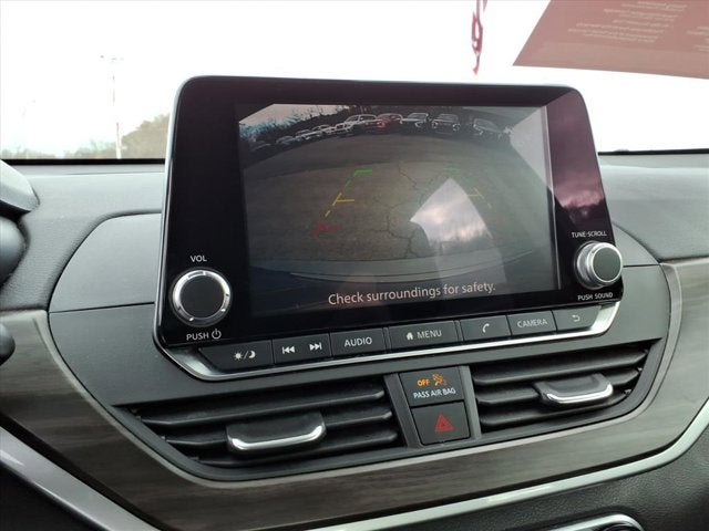 Nissan Certified Certified, CVT with Xtronic, 17 Machined Alloy Wheels, 4-Wheel Disc Brakes, 6 Speakers, ABS brakes, Air Conditioning, Alloy wheels, AM/FM radio: SiriusXM, Auto High-beam Headlights, Blind Spot Warning, Brake assist, Bumpers: body-color, Cloth Seat Trim, Delay-off headlights, Driver door bin, Driver vanity mirror, Dual front impact airbags, Dual front side impact airbags, Electronic Stability Control, Floor Mats/Trunk Mat/Hideaway Net, Four wheel independent suspension, Front anti-roll bar, Front Bucket Seats, Front Center Armrest, Front reading lights, Fully automatic headlights, Illuminated entry, Knee airbag, Low tire pressure warning, NissanConnect featuring Apple CarPlay and Android Auto, Occupant sensing airbag, Outside temperature display, Overhead airbag, Overhead console, Panic alarm, Passenger door bin, Passenger vanity mirror, Power door mirrors, Power driver seat, Power steering, Power windows, Radio data system, Radio: AM/FM Audio System, Rear anti-roll bar, Rear Parking Sensors, Rear reading lights, Rear seat center armrest, Rear side impact airbag, Rear window defroster, Remote keyless entry, Security system, Speed control, Speed-sensing steering, Speed-Sensitive Wipers, Split folding rear seat, Steering wheel mounted audio controls, Tachometer, Telescoping steering wheel, Tilt steering wheel, Traction control, Trip computer, and Variably intermittent wipers.