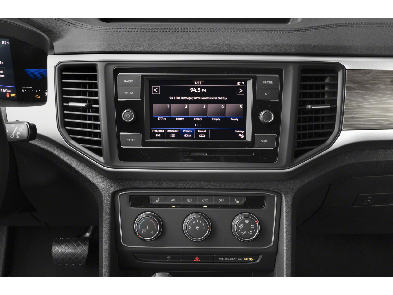 12 Speakers, 3.60 Axle Ratio, 4-Wheel Disc Brakes, ABS brakes, Air Conditioning, Alloy wheels, AM/FM radio: SiriusXM with 360L, Auto High-beam Headlights, Auto-dimming Rear-View mirror, Automatic temperature control, Brake assist, Bumpers: body-color, Compass, Delay-off headlights, Driver door bin, Driver vanity mirror, Dual front impact airbags, Dual front side impact airbags, Electronic Stability Control, Emergency communication system: VW Car-Net Safe & Secure 5-year, First Aid Kit, Four wheel independent suspension, Frameless Auto-Dimming Rearview Mirror, Front anti-roll bar, Front Bucket Seats, Front Center Armrest, Front dual zone A/C, Front fog lights, Front reading lights, Fully automatic headlights, Heated & Ventilated Front Comfort Sport Seats, Heated door mirrors, Heated front seats, Heated rear seats, Heated steering wheel, Heavy Duty Trunk Liner w/VW CarGo Blocks, Illuminated entry, Leather Shift Knob, Low tire pressure warning, Memory seat, Navigation System, Occupant sensing airbag, Outside temperature display, Overhead airbag, Overhead console, Panic alarm, Passenger door bin, Passenger vanity mirror, Perforated Vienna Leather Seating Surfaces, Power door mirrors, Power driver seat, Power Liftgate, Power moonroof: Panoramic, Power passenger seat, Power steering, Power windows, Privacy Cover, Radio data system, Radio: MIB3 Discover Media w/8 Touchscreen Navigation, Rain sensing wipers, Rear anti-roll bar, Rear reading lights, Rear seat center armrest, Rear window defroster, Rear window wiper, Remote keyless entry, Roadside Assistance Kit, Roof Rack Base Carrier Bars (Set of 2), Rubber Mats Kit, Security system, Speed control, Speed-sensing steering, Split folding rear seat, Spoiler, Sport steering wheel, Standard Suspension, Steering wheel mounted audio controls, Tachometer, Telescoping steering wheel, Tilt steering wheel, Traction control, Trip computer, Turn signal indicator mirrors, Variably intermittent wipers, Ventilated front seats, Volkswagen Logo Puddle Lights, and Wheels: 21 2-Tone Machined Alloy.