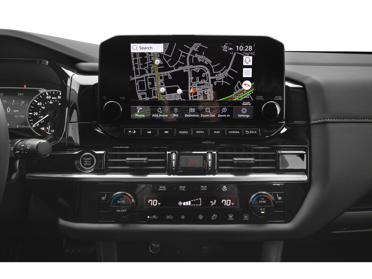 Nissan Certified Certified, 4WD, 3rd row seats: bench, 4-Wheel Disc Brakes, 6 Speakers, ABS brakes, Air Conditioning, Alloy wheels, AM/FM radio: SiriusXM, Auto High-beam Headlights, Auto-dimming Rear-View mirror, Automatic temperature control, Axle Ratio: 4.334, Bench Seat Carpeted Floor Mats (Set of 4), Black Splash Guards (Set of 4), Brake assist, Bumpers: body-color, Cross Bars, Delay-off headlights, Driver door bin, Driver vanity mirror, Dual front impact airbags, Dual front side impact airbags, Electronic Stability Control, Emergency communication system, Exterior Parking Camera Rear, Four wheel independent suspension, Front anti-roll bar, Front Bucket Seats, Front Center Armrest, Front dual zone A/C, Front reading lights, Fully automatic headlights, Garage door transmitter: HomeLink, Heated door mirrors, Heated Front Bucket Seats, Heated front seats, Heated steering wheel, Illuminated entry, Knee airbag, Leather steering wheel, Leather-Appointed Seating Surfaces, Low tire pressure warning, Navigation system: NissanConnect with Navigation and Services, Nissan USB Charging Cable Set, NissanConnect featuring Apple CarPlay and Android Auto, NissanConnect w/Navigation & Services, Occupant sensing airbag, Outside temperature display, Overhead airbag, Overhead console, Panic alarm, Passenger door bin, Passenger vanity mirror, Power door mirrors, Power driver seat, Power Liftgate, Power passenger seat, Power steering, Power windows, Radio data system, Radio: AM/FM Audio System, Rear air conditioning, Rear anti-roll bar, Rear reading lights, Rear seat center armrest, Rear side impact airbag, Rear window defroster, Rear window wiper, Reclining 3rd row seat, Remote keyless entry, Security system, Speed control, Speed-sensing steering, Split folding rear seat, Spoiler, Steering wheel mounted audio controls, Tachometer, Telescoping steering wheel, Tilt steering wheel, Traction control, Trip computer, Turn signal indicator mirrors, Variably intermittent wipers, and Wheels: 18 x 8J Machined Alloy.